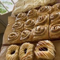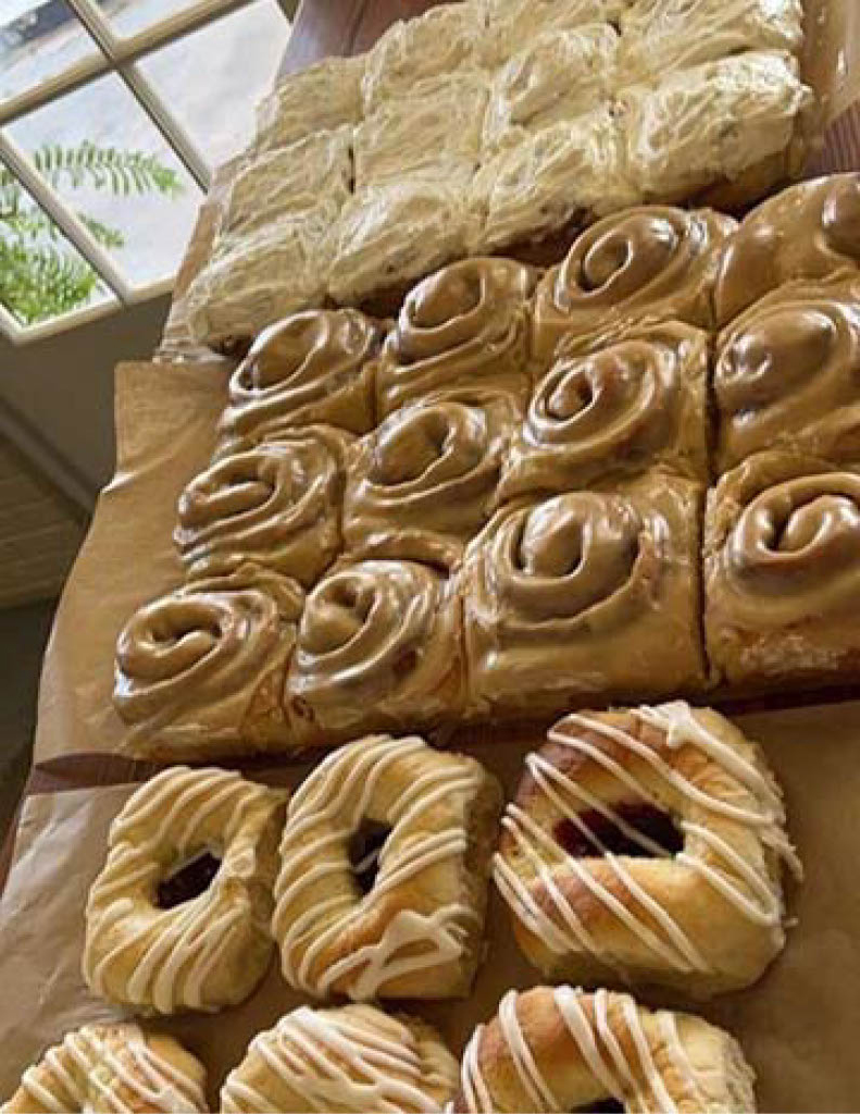 We offer homemade yogurt, cinnamon rolls, kolaches, croffles, pop-tarts, a variety of cakes and specialty breads. Our stone ground grits (breakfast item) are from neighboring Kemper County’s legendary Sciple’s Water Mill.