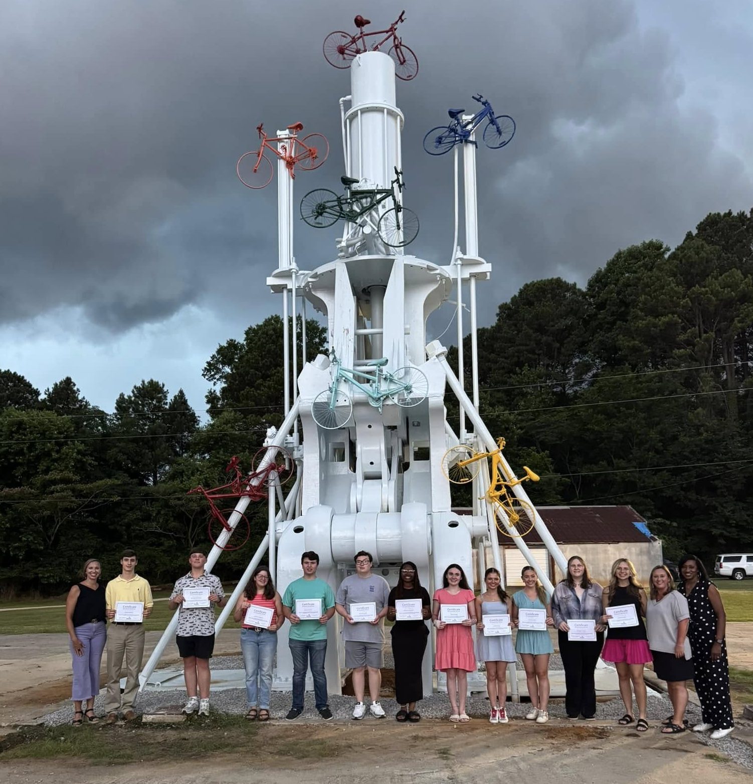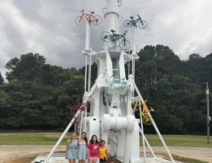 With the help of grant funds from Mississippi Hills National Heritage Area and in-kind volunteer efforts from the students and multiple community leaders, the students got out in the hot sunshine and painted the bicycles different colors before the bicycles were welded on to the press.